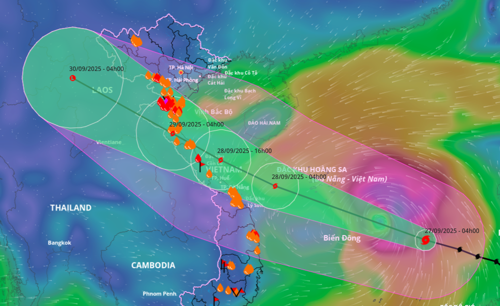Dự báo bằng công nghệ mới AI, Trung tâm Dự báo khí tượng thủy văn quốc gia phối hợp với Weather New và Google, nhận định đêm 28.9 bão sẽ ảnh hưởng Việt Nam, trọng tâm là khu vực Hà Tĩnh – bắc Quảng Trị, cường độ cấp 10 – 12, giật cấp 14.
