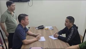Thiếu tướng Nguyễn Minh Tuấn – Giám đốc Công an tỉnh Phú Thọ lấy lời khai đối tượng. Ảnh: CACC