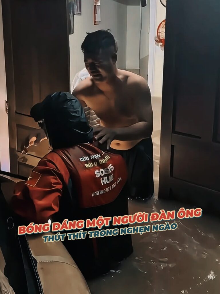 Người chồng khóc khi kể lại giây phút vợ mình bị nước cuốn trôi. Nguồn: Đội 0 đồng Huế.