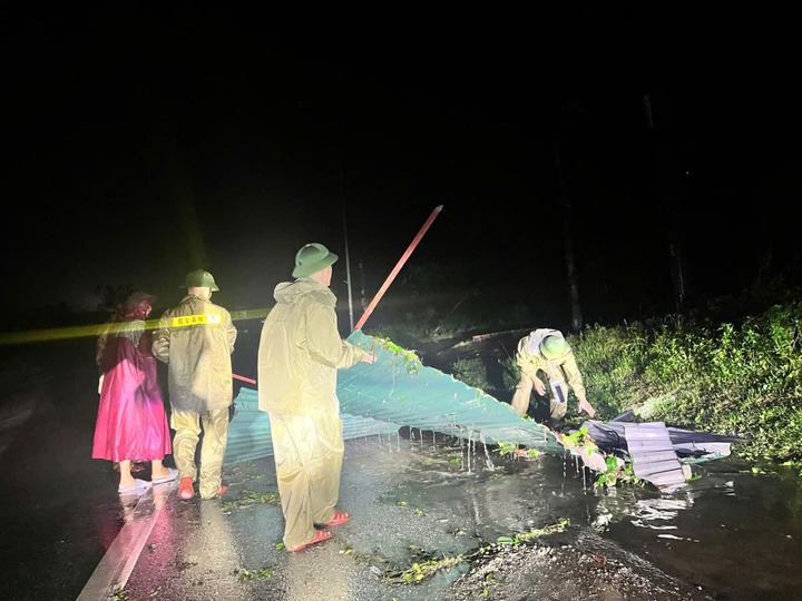 Theo VTC News, tại Hà Tĩnh: Bão số 10 đổ bộ gây mưa to, gió rít từng hồi, cây xanh, cột điện đổ la liệt, mái nhà bị gió thổi bay tứ tán. (Ảnh: Thục Anh)