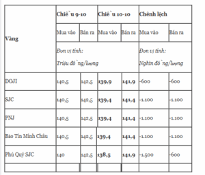 Giá vàng miếng trong nước cập nhật chiều 10-10 như sau: