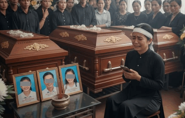 Chiều nay, em mang di ảnh 3 bố con về, đặt lên bàn thờ cũ.