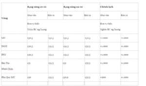 Giá vàng miếng trong nước cập nhật lúc 5 giờ sáng 22-10 như sau: