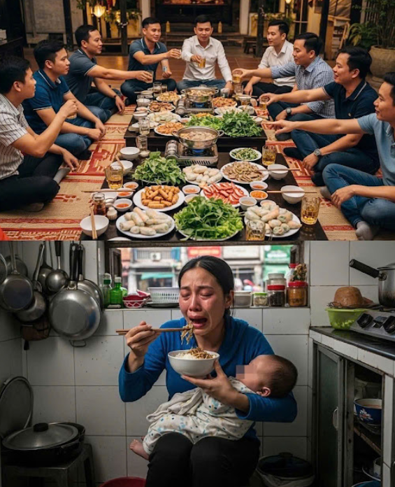 “Anh vừa nói cái gì hả? ‘Ở nhà bế con thôi chứ có làm gì đâu’? Anh có biết người ta mới sinh chưa đầy tháng không? Anh có biết con dâu mẹ đứng suốt từ sáng đến giờ, người chưa kịp lành hẳn, mà phải nấu 3 mâm cơm cho anh nhậu không?”