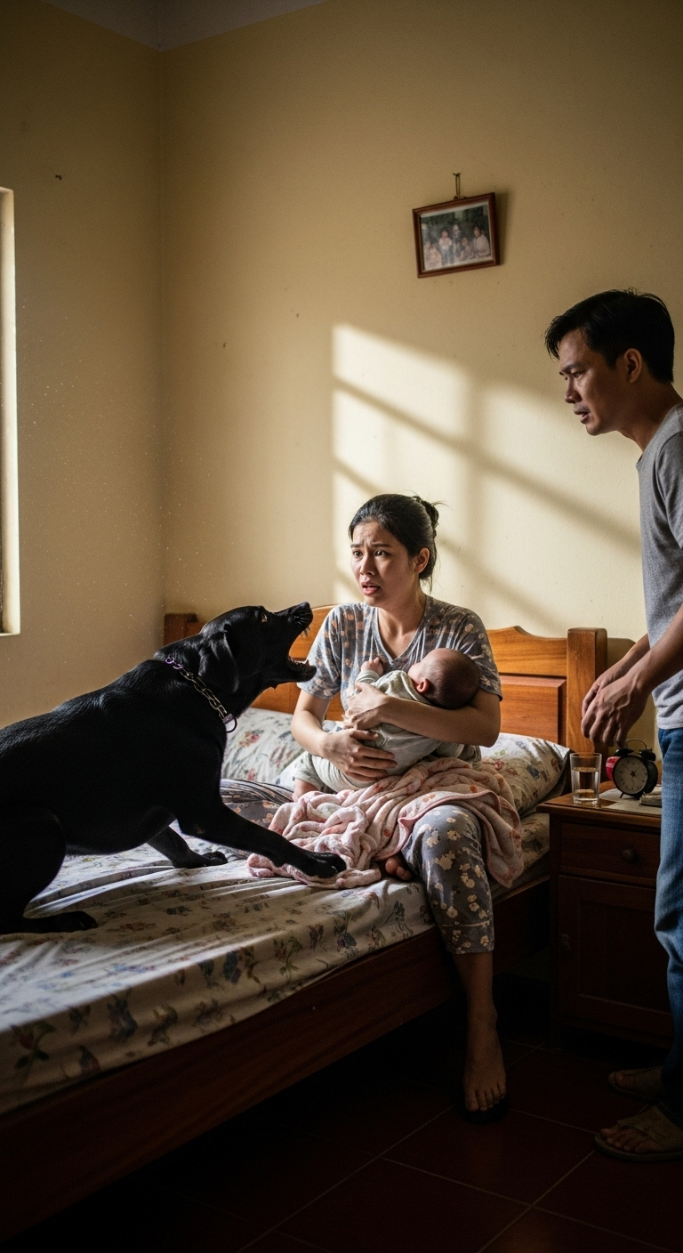 Từ ngày đưa đứa con trai mới sinh về nhà, con chó đen tên Mực bỗng trở thành kẻ canh gác không rời phòng ngủ. Ban đầu, vợ chồng Sơn coi đó là dấu hiệu tốt: chó biết giữ em, biết canh cửa. Nhưng chỉ sau ba đêm, niềm an tâm rơi vỡ. Đêm thứ tư, đúng 2 giờ 13 phút, Mực đứng thẳng bốn chân, lông gáy dựng như đinh, gầm gừ với chiếc nôi đặt cạnh giường.