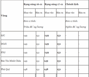 Giá vàng miếng trong nước cập nhật sáng 17-11 như sau: