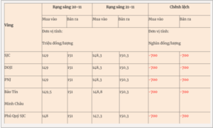 Giá vàng miếng trong nước cập nhật sáng 21-11 như sau: