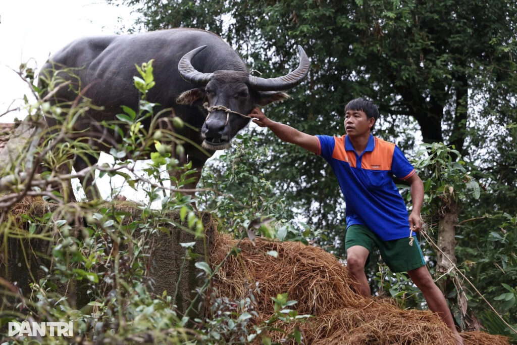Bà Điệp chia sẻ: “Khi trở về nhà sau lũ, tôi thấy trâu đứng trên mái nhà. Ban đầu tôi lo sợ nhà sập, nhưng sau đó lại thấy thương nó. Nó đã chịu đói, chịu khát mấy ngày liền, tôi sợ nó sẽ chết mất nếu không được đưa xuống sớm”.