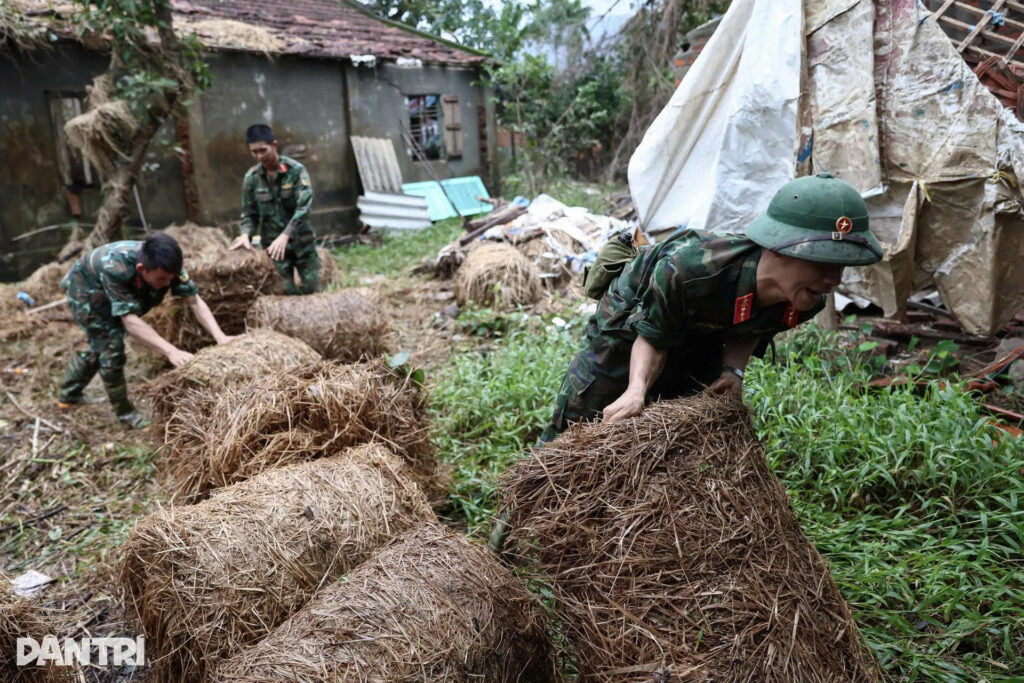 Phương án ban đầu là dùng xe thùng, nhưng do đường vào nhà hẹp, không thể tiếp cận, nên các chiến sĩ đã quyết định xếp những cuộn rơm chồng lên nhau tạo thành lối đi để dẫn trâu xuống.