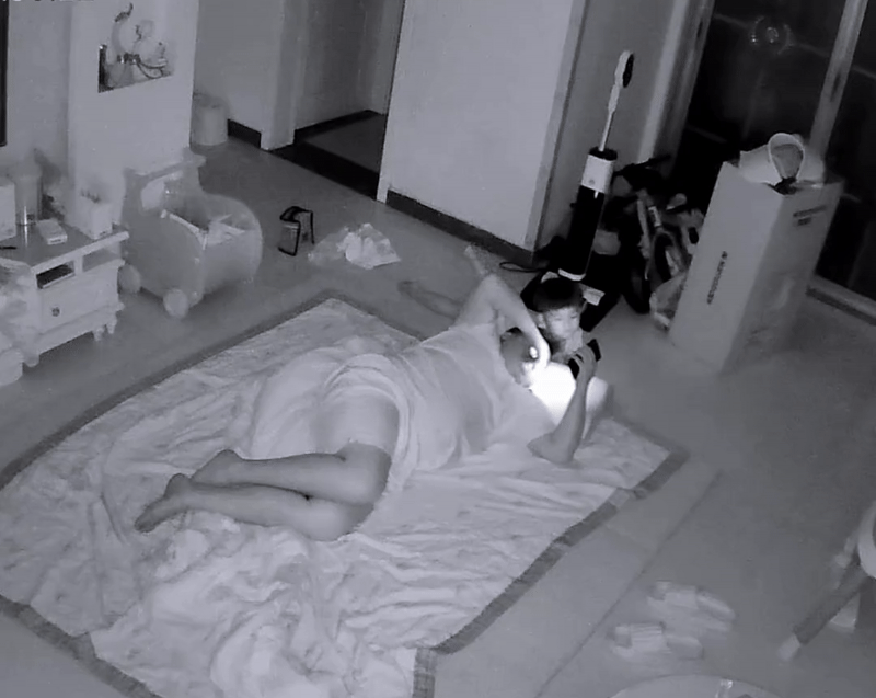 Đoạn clip ghi lại cảnh trong một căn phòng khách lúc nửa đêm, khi mọi người trong nhà đã yên giấc. Cả căn phòng tắt tối om, chỉ còn ánh sáng từ màn hình điện thoại lóe lên, soi rõ khuôn mặt của một người đàn ông, được cho là ông bố trẻ trong gia đình đang nằm dài trên tấm thảm ở phòng khác. Có vẻ anh đang tận hưởng những phút giây riêng tư, cười khúc khích theo những nội dung thú vị trên điện thoại, hoàn toàn quên mất rằng xung quanh đang im lìm trong giấc ngủ.
