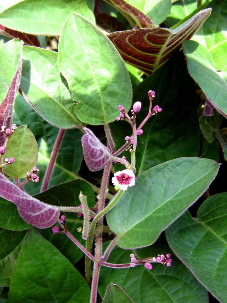 Lá mơ lông khi vò có mùi hôi hơi khó chịu. Cây lá mơ lông là loài thực vật dây leo, thân thảo, sống lâu năm. Thân dây leo dài từ 3-5m, thân non hơi dẹt, không có lông, có màu xanh hoặc tím đỏ. Rễ mọc thành chùm, rễ đốt mọc trên trụ bám. Lá mơ lông mọc cách, phiến lá hình bầu dục hoặc hình tim, dài 5-10cm, rộng 2-4cm, đầu nhọn, gốc thì tròn. Hai mặt lá có màu lục hoặc mặt trên màu lục, mặt dưới màu tía. Mặt trên lá nhẵn không có lông, mặt dưới thường có nhiều lông dày hoặc không có lông, gân lá rõ ở mặt trên, cuống lá mảnh, dài 1-2cm.