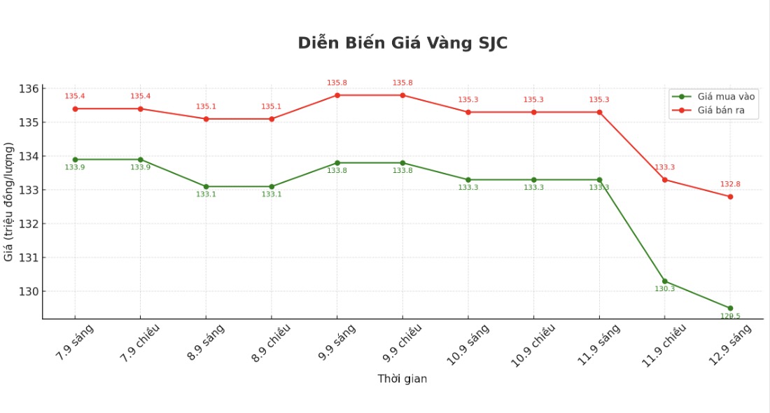 Giá vàng hôm nay 12.9: Vàng trong nước giảm mạnh. Chênh lệch mua vào – bán ra bị đẩy lên tới 4,4 triệu đồng/lượng, tiềm ẩn nguy cơ thua lỗ. Cập nhật giá vàng SJC Tính đến 9h30, giá vàng miếng SJC được Tập đoàn DOJI niêm yết ở ngưỡng 129,5-132,8 triệu đồng/lượng (mua vào […]